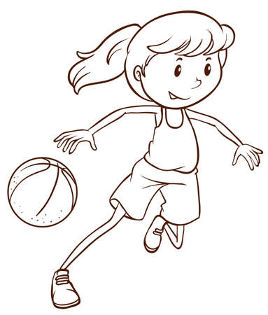 白い背景の上の女性のバスケット ボール選手の簡単なスケッチのイラスト のイラスト素材 ベクタ Image